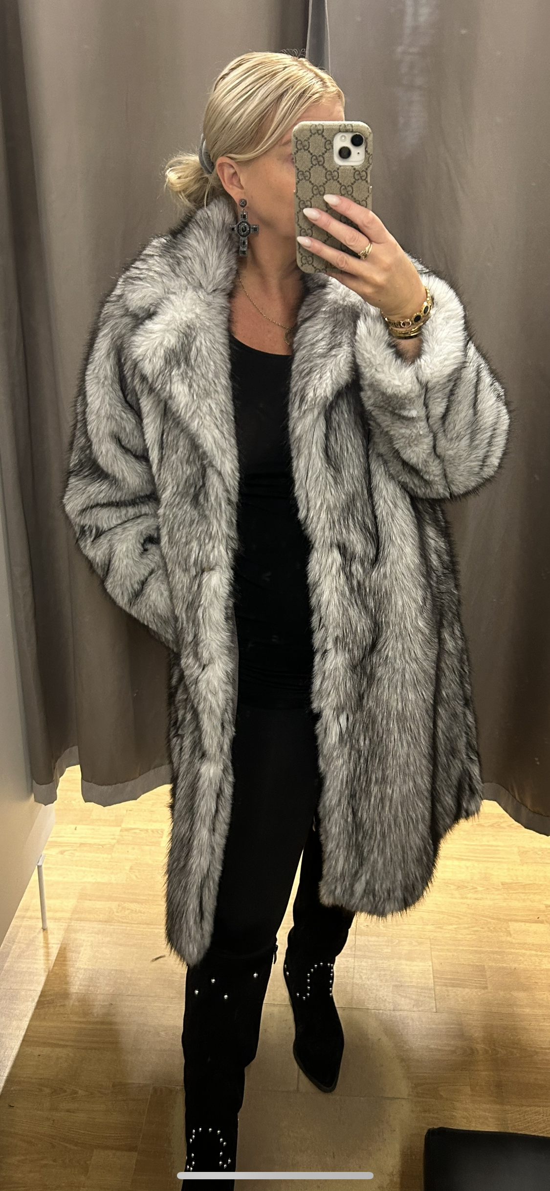 Grár og svartur pels
