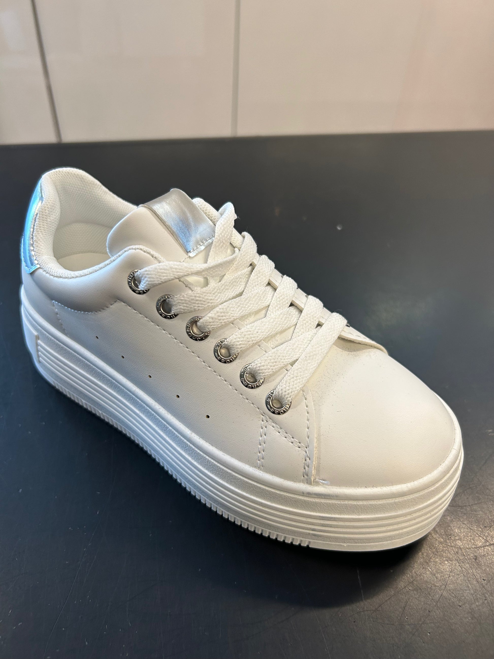 Hvítir strigaskór með silfri